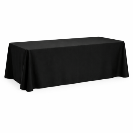 Our black fitted trestle table linen provides a sleek, modern and professional finish, ideal for exhibitions, conferences, corporate events, trade shows and formal functions. Designed to fit snugly around standard trestle tables, this fitted style creates a clean, streamlined appearance with no excess fabric pooling on the floor.